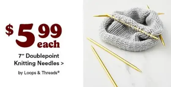 Limited time only! Shop in store and get $5.99 each 7'' doublepoint knitting needles by loops & threads.